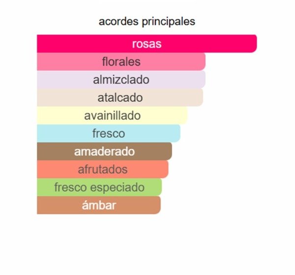 Su apertura fresca y alegre mezcla lichi, bergamota y un toque especiado de nuez moscada. El corazón se corona con una rosa turca intensa y distintiva, envuelta en el dulzor cremoso de la vainilla, la suavidad floral de la peonía y la pureza del almizcle. Finalmente, la base cálida y envolvente de vainilla, cedro, incienso y almizcle blanco deja una estela seductora y elegante.